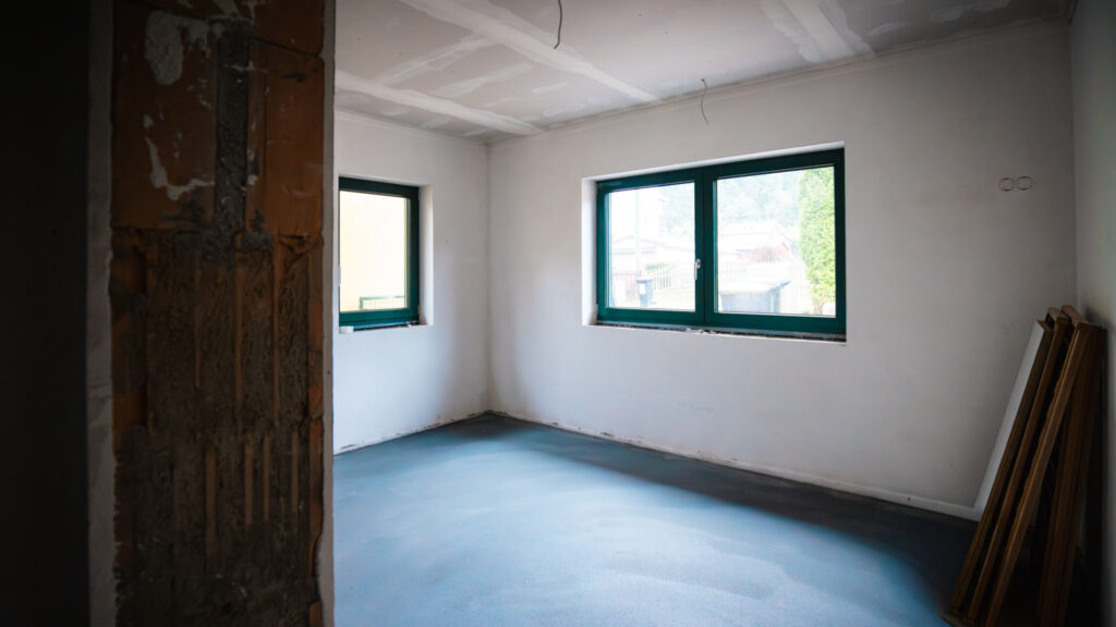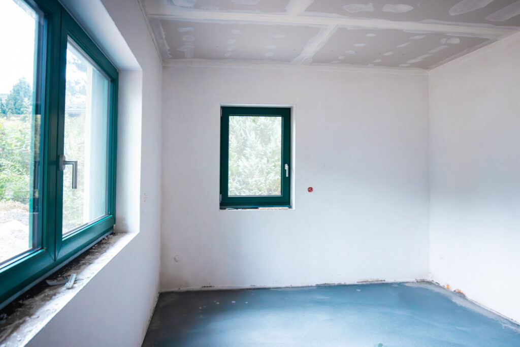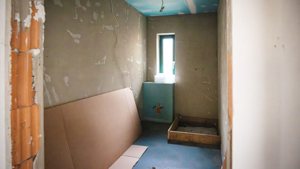 • In allen Räumen wurde der Estrich verlegt und die Wände verputzt – die Innenräume nehmen nun allmählich Gestalt an.