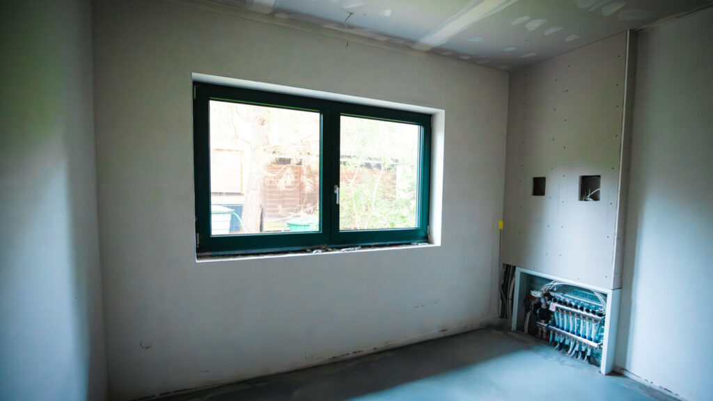 • Auch die Fenster sind eingebaut und sorgen für ein erstes Gefühl von Zuhause.