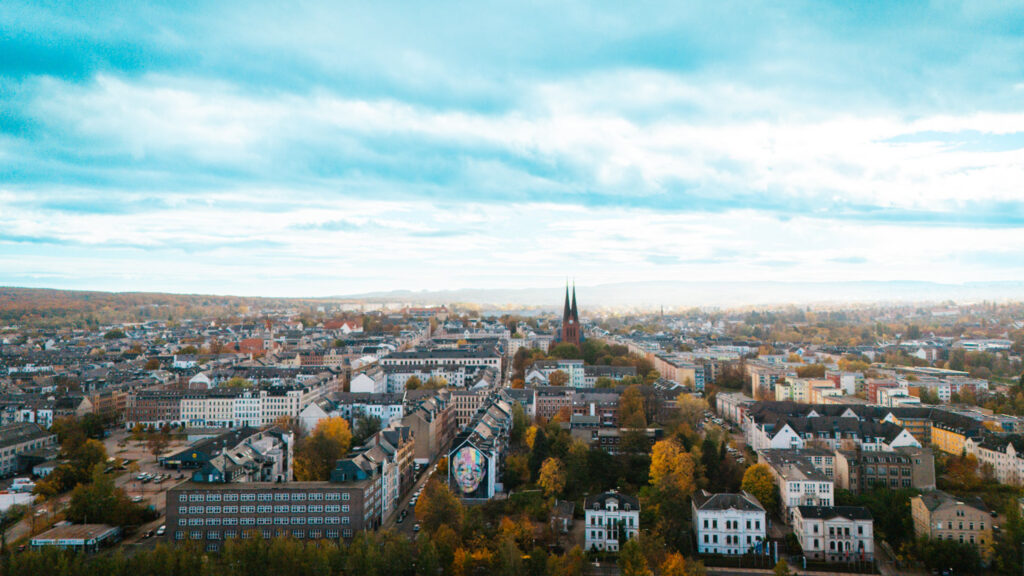 Blick von oben auf das Bürogebäude auf der Glockenstraße in Chemnitz