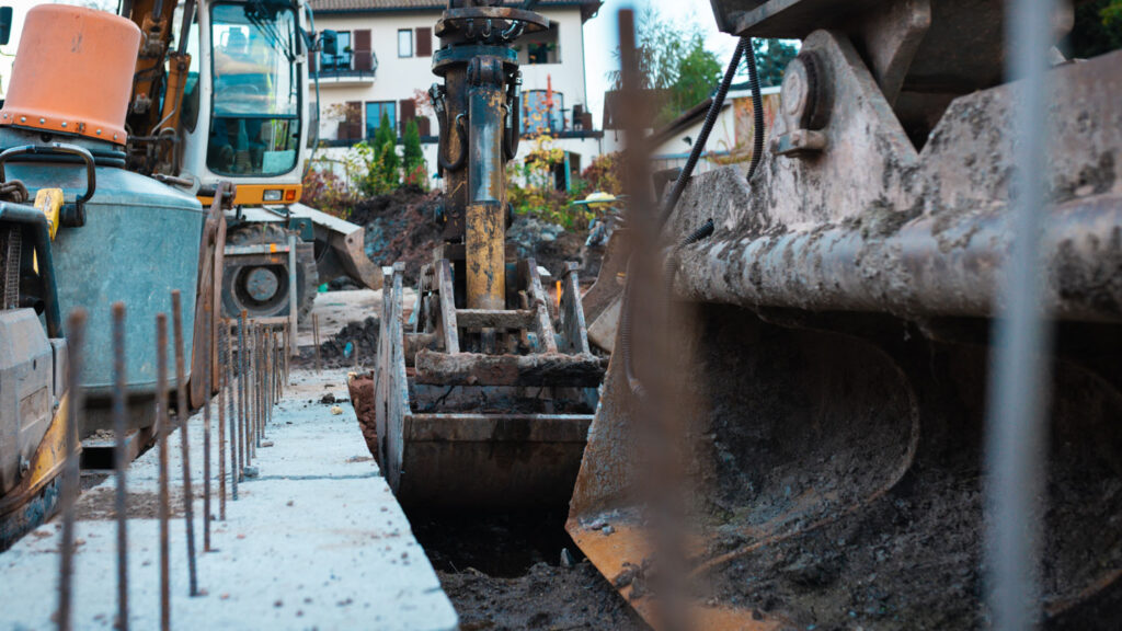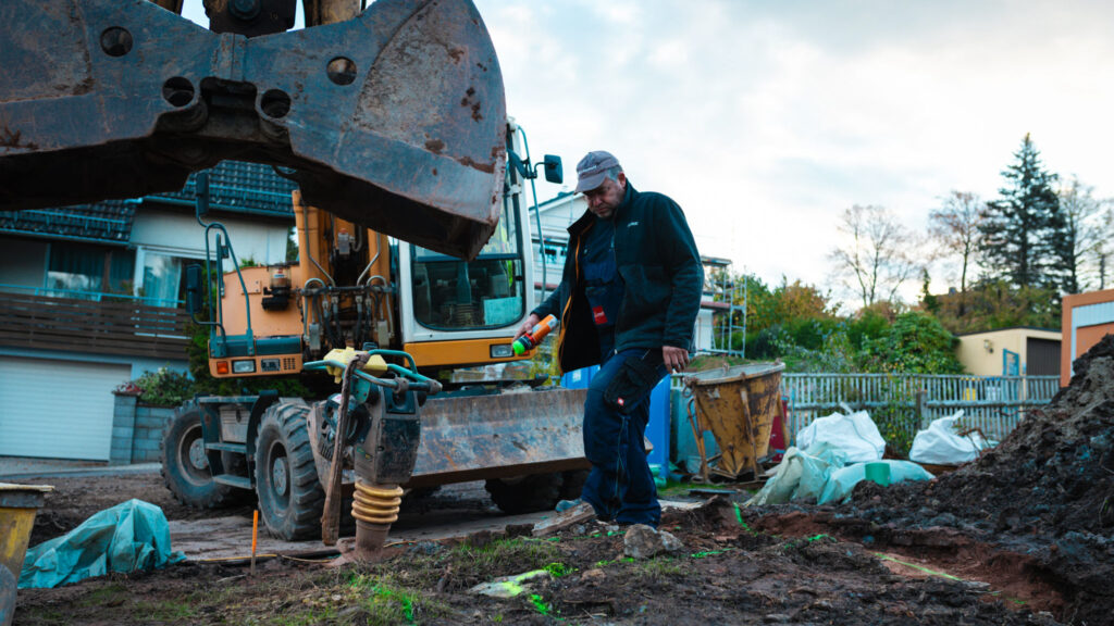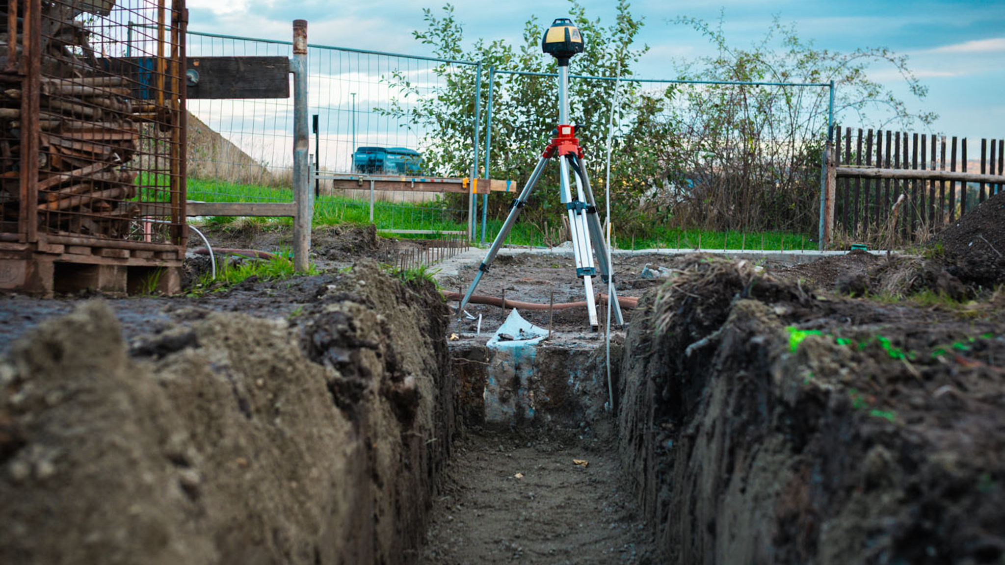Der Baugrund stellt uns aufgrund einer Grundwasserproblematik vor besondere Herausforderungen. Deshalb setzen wir Maßnahmen zur Grundwasserhaltung um, damit wir die Fundamente sicher und im Trockenen herstellen können.