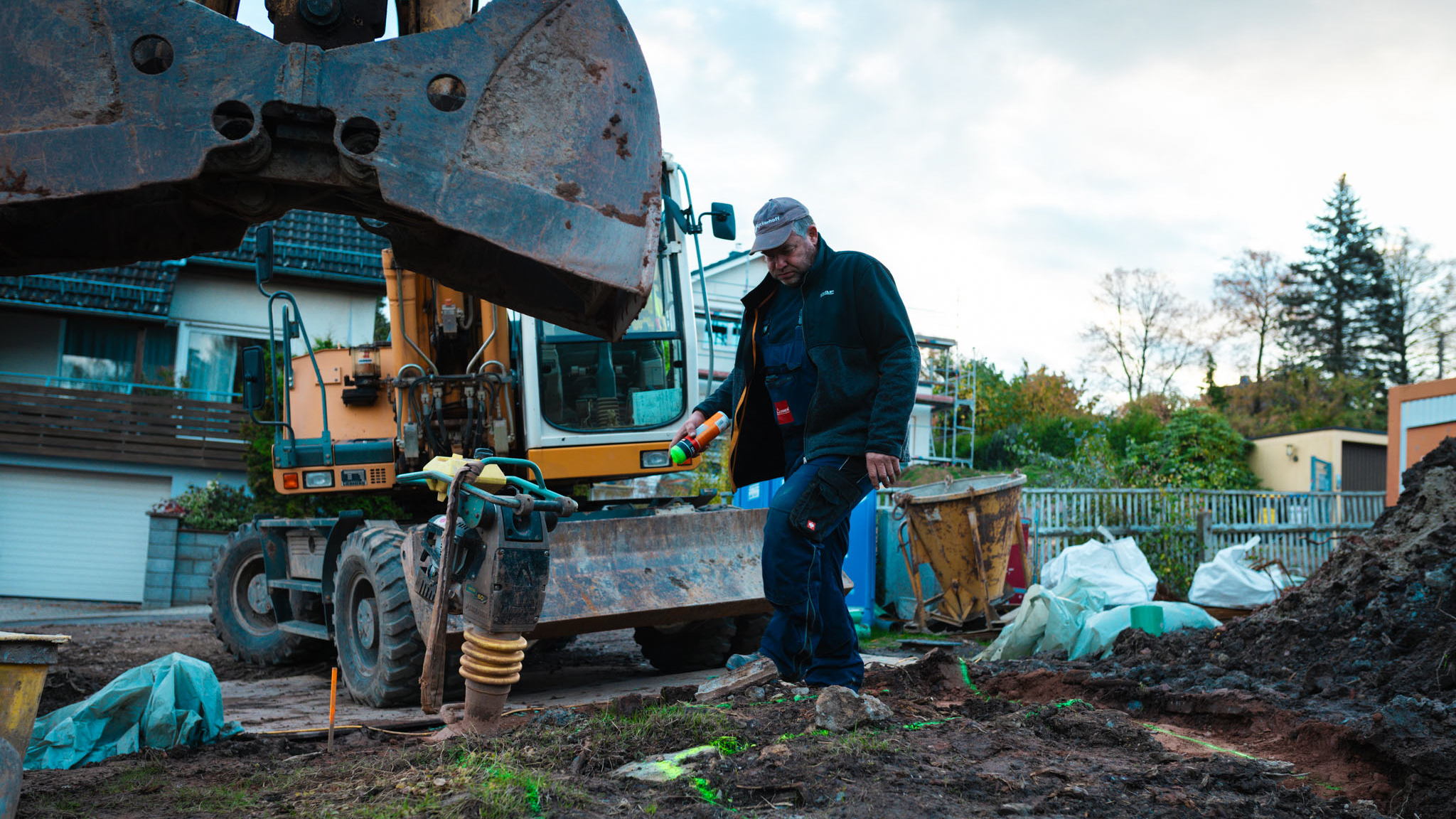 Sobald unsere Tiefbauer ihr Baufeld optimal vorbereitet haben, übernehmen die Hochbauer: Das Gelände wird so hergerichtet, dass der Kran aufgestellt werden und der Hochbau ungehindert starten kann.