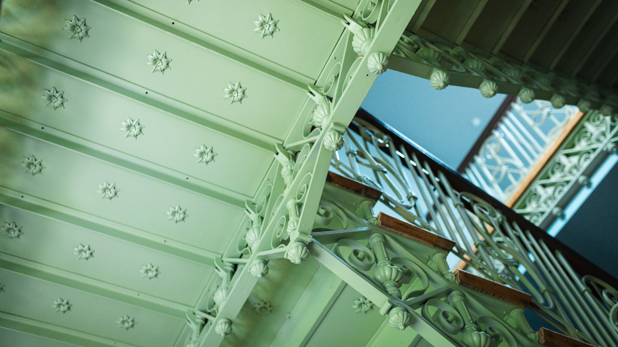 • Am Eingangsbereich blieben die alten Säulen bestehen – ebenfalls aufwendig restauriert, damit der ursprüngliche Charme erhalten bleibt.