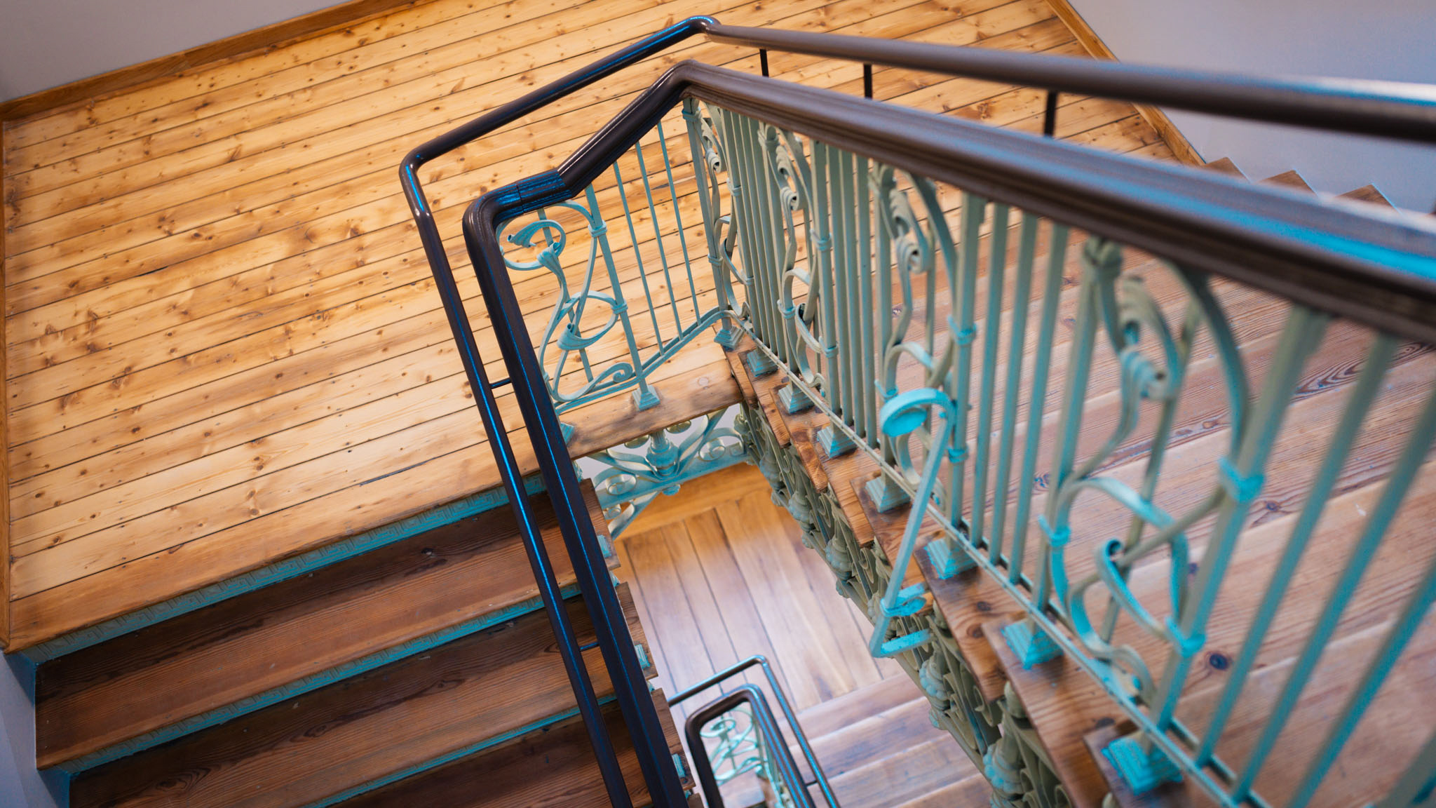 • Der Mitteltrakt des Gebäudes blieb erhalten – inklusive der großen, historischen Treppenanlage, die wir sorgfältig saniert haben.