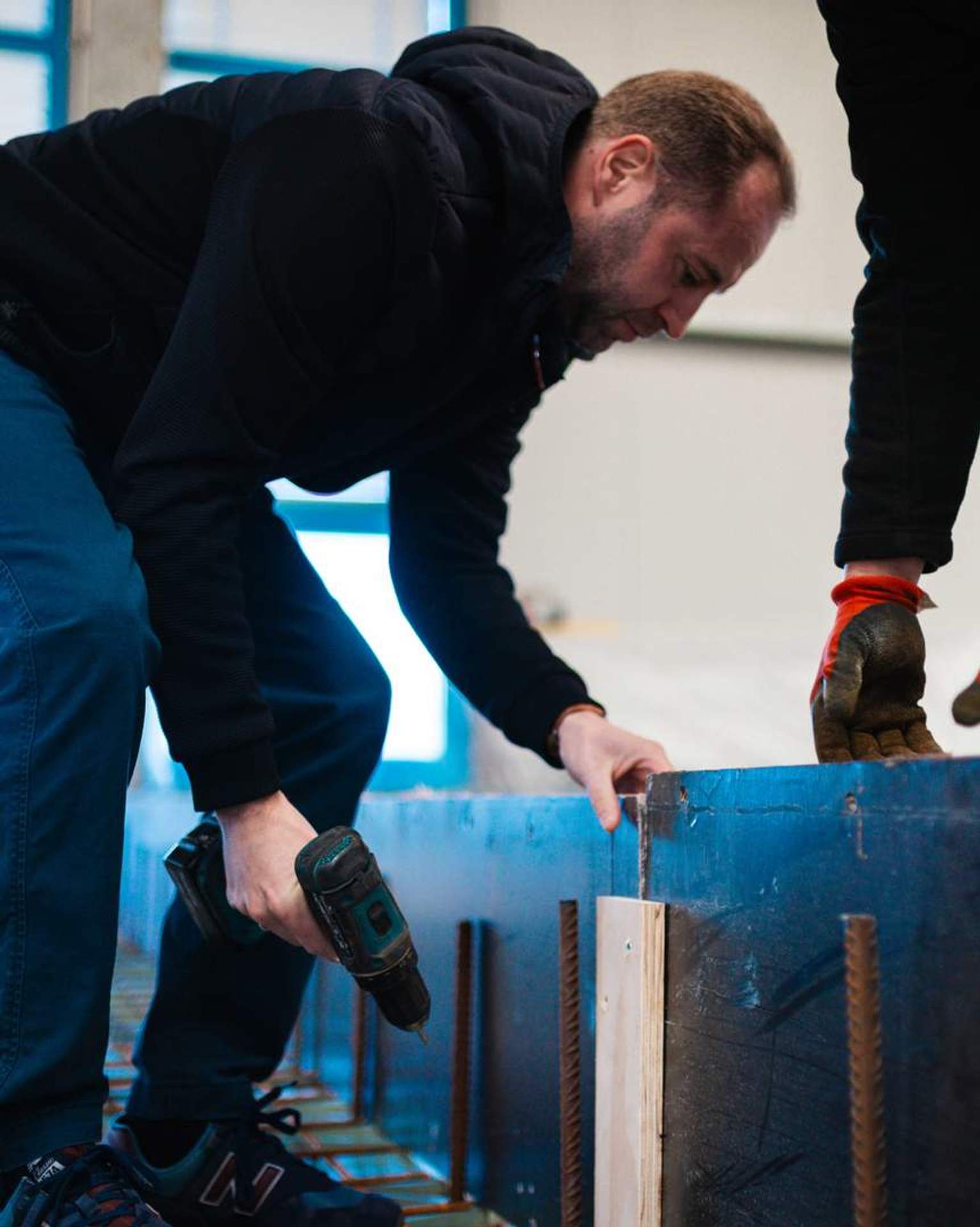 In einer Industriehalle des Autohauses Fugel laufen die Vorbereitungen für den Einbau einer gewaltigen Menge Beton auf Hochtouren.