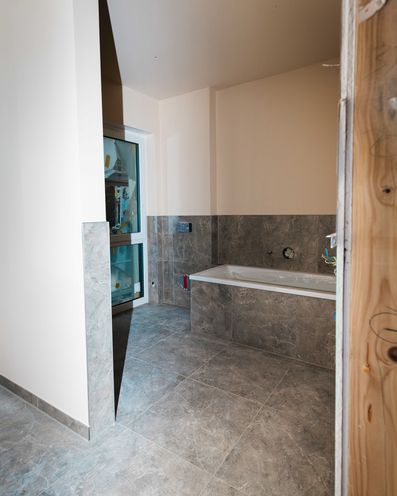 Die Bäder sind vorbereitet und warten nun auf die Komplettierung mit der Sanitärausstattung.